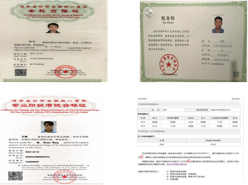 我院2018届会计专业毕业生王帅,凭借扎实的专业知识和自己的努力,于2018年、2019年参加注册会计师资格考试,2019年12月全部合格通过6门科目的考试,取得注册会计师资格。先后在大华会计师事务所、容诚会计师事务所工作,主要参与项目IPO辅导审计、上市公司年报审计等工作。