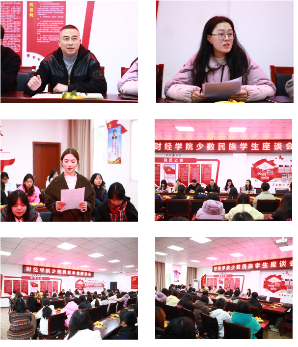 为持续落实民族团结进步教育工作的要求,营造各民族学生共同团结友爱、共同学习进步的良好氛围,铸牢中华民族共同体意识。财经学院于2025年12月2日中午在二教304召开少数民族学生座谈会。会议由我院学生工作办公室主任庹江子主持,党总支书记艾海涛、全体专职辅导员及50余位少数民族学生代表参加。