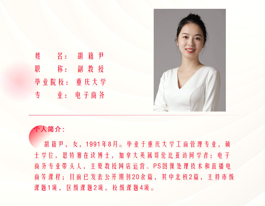 专业教师 >> 副教授>>胡籍尹